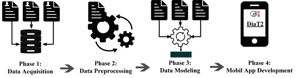 Project Phases: Data acquisition phase involves collecting relevant health information from the target population using various methods such as surveys, blood tests, and wearable devices. Two diabetologist consultants supervise this phase. The data preprocessing phase is crucial for preparing the data for the diagnosis model to involve cleaning, transforming, and analyzing the data using statistical and machine learning techniques